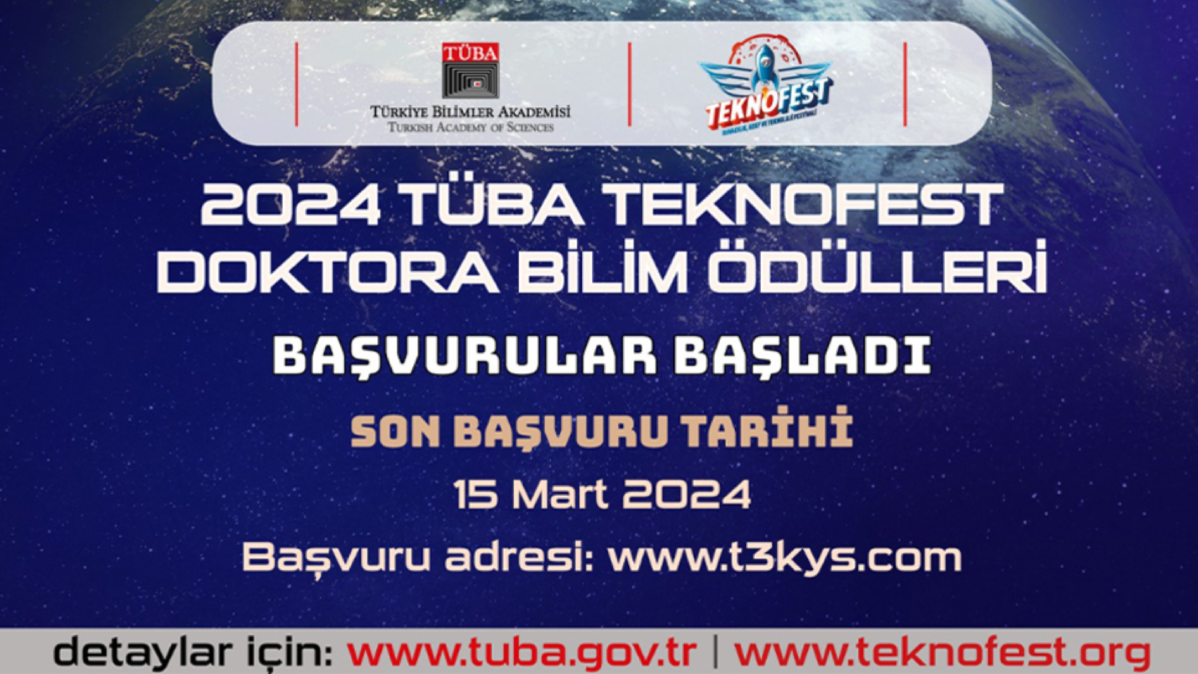 2024 Yılı TÜBA Üstün Başarılı Genç Bilim İnsanı Ödülleri Programı (TÜBA-GEBİP) ve TÜBA Bilimsel Telif Eserleri Ödüllendirme Programı (TÜBA-TESEP) ödül başvuruları başlamıştır.