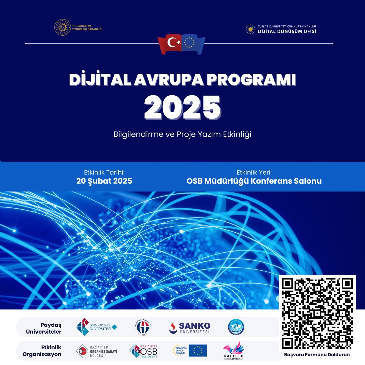 Üniversitemizin de paydaş olduğu Dijital Avrupa Programı (DAP) Bilgilendirme ve Proje Yazım Eğitimi Etkinliği 20 Şubat 2025 Perşembe günü 09:30-15:30 saatleri arasında, OSB Müdürlüğü Konferans Salonu’nda gerçekleştirilecektir.