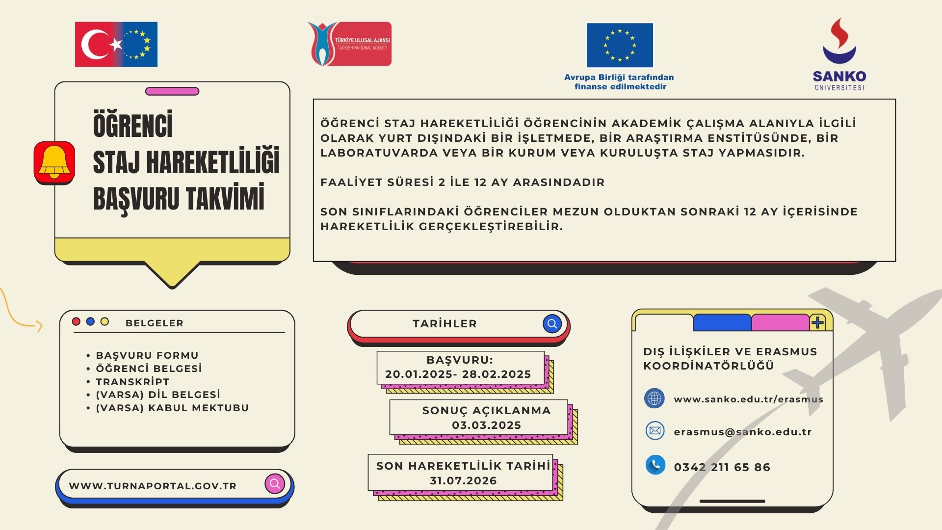 ERASMUS ÖĞRENCİ STAJ HAREKETLİLİĞİ BAŞVURULARI BAŞLADI