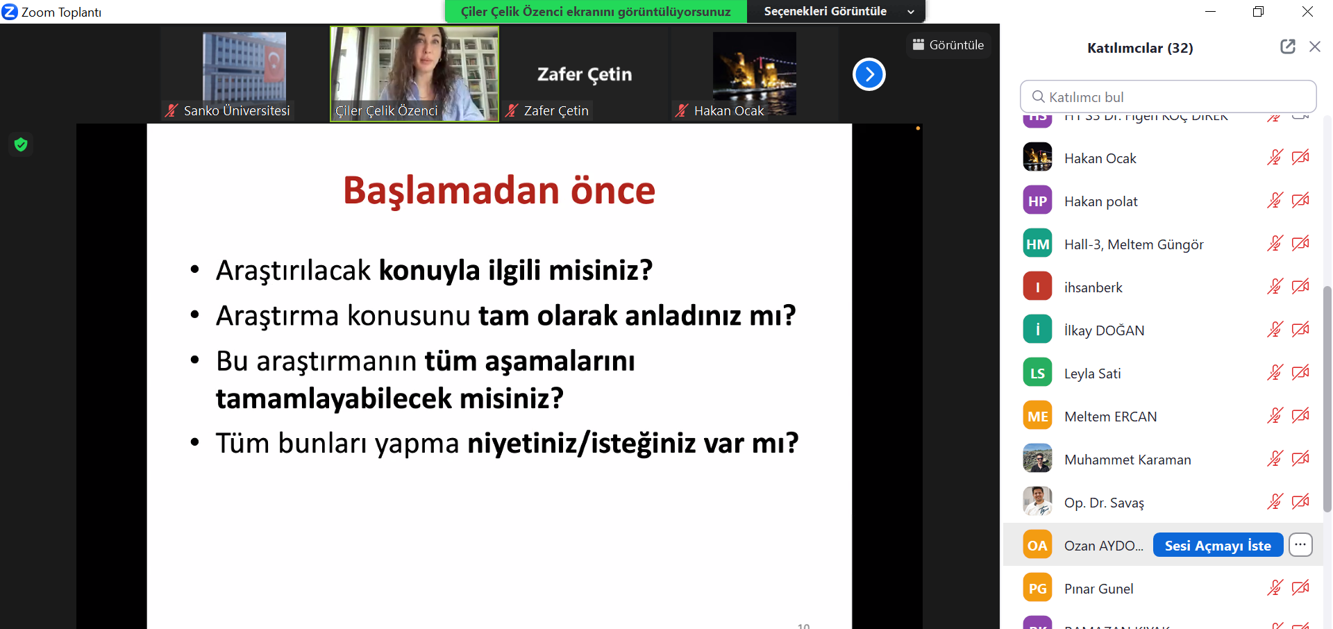 SANKO Üniversitesi Tıp Fakültesi Öğretim Üyesi Prof. Dr. Zafer Çetin’in koordinatörlüğünü yaptığı BİDEB 2237-B programı kapsamında TÜBİTAK tarafından desteklenen ‘Tıp ve Sağlık Bilimleri Alanında TÜBİTAK Araştırma Projesi Yazma Eğitimi’ başlıklı etkinlik 11-13 Kasım 2023 tarihleri arasında gerçekleştirildi.