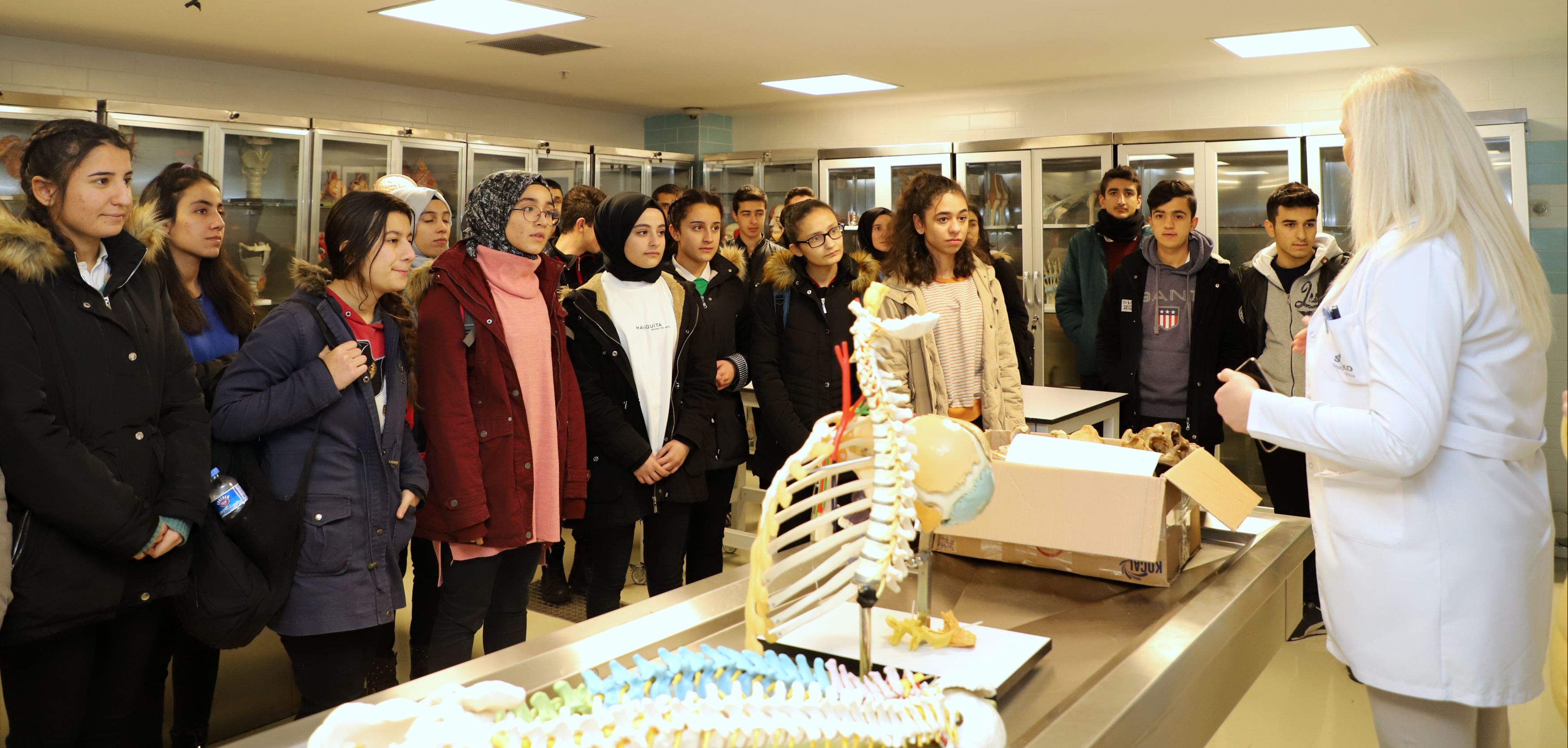 Üniversitenin yemekhane, kütüphane ve laboratuvarları gezme fırsatı bulan öğrenciler, Laboratuvar Sorumlusu Nilay Uçar’dan bilgiler aldı.