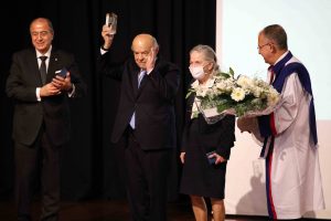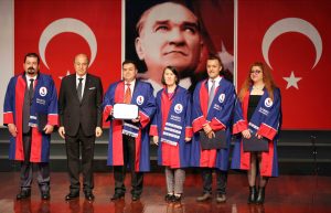 Açılış dersinin tamamlanmasının ardından Prof. Dr. İbrahim Ayhan Özdemir’e Mütevelli Heyet Başkanı Zeki Konukoğlu ve Rektör Prof. Dr. Güner Dağlı tarafından armağan ve çiçek takdim edildi.