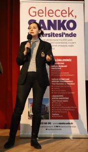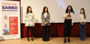 SANKO Üniversitesi Tanıtım Ofisi sorumlusu Sema Tavşancıl da sağlanan burs ve eğitim olanaklarına ilişkin sunum gerçekleştirdi. SANKO Üniversitesi Sağlık Bilimleri Fakültesi Hemşirelik Bölümü 4’üncü sınıf öğrencileri Zehra Ergün ile Canan Sakmak, Beslenme ve Diyetetik Bölümü 4’üncü sınıf öğrencisi İrem Bakırcı ve Fizyoterapi ve Rehabilitasyon Bölümü 2’nci sınıf öğrencisi Arzu Demir ise bölümlerine ilişkin bilgi paylaşımında bulundu.