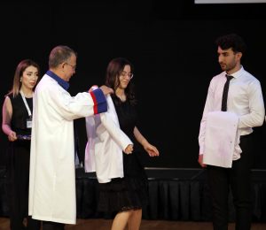 Hekim olarak mezun olduğunuzda hastalarınıza aileden biri gibi davranın. Hastayı babanız, anneniz, kardeşiniz, arkadaşınız gibi görüp şefkatli davranın. Beyaz önlüğü giyerek tıp öğrencisi olmaktan, doktorluğa adım atıyorsunuz. Hayırlı olsun.”