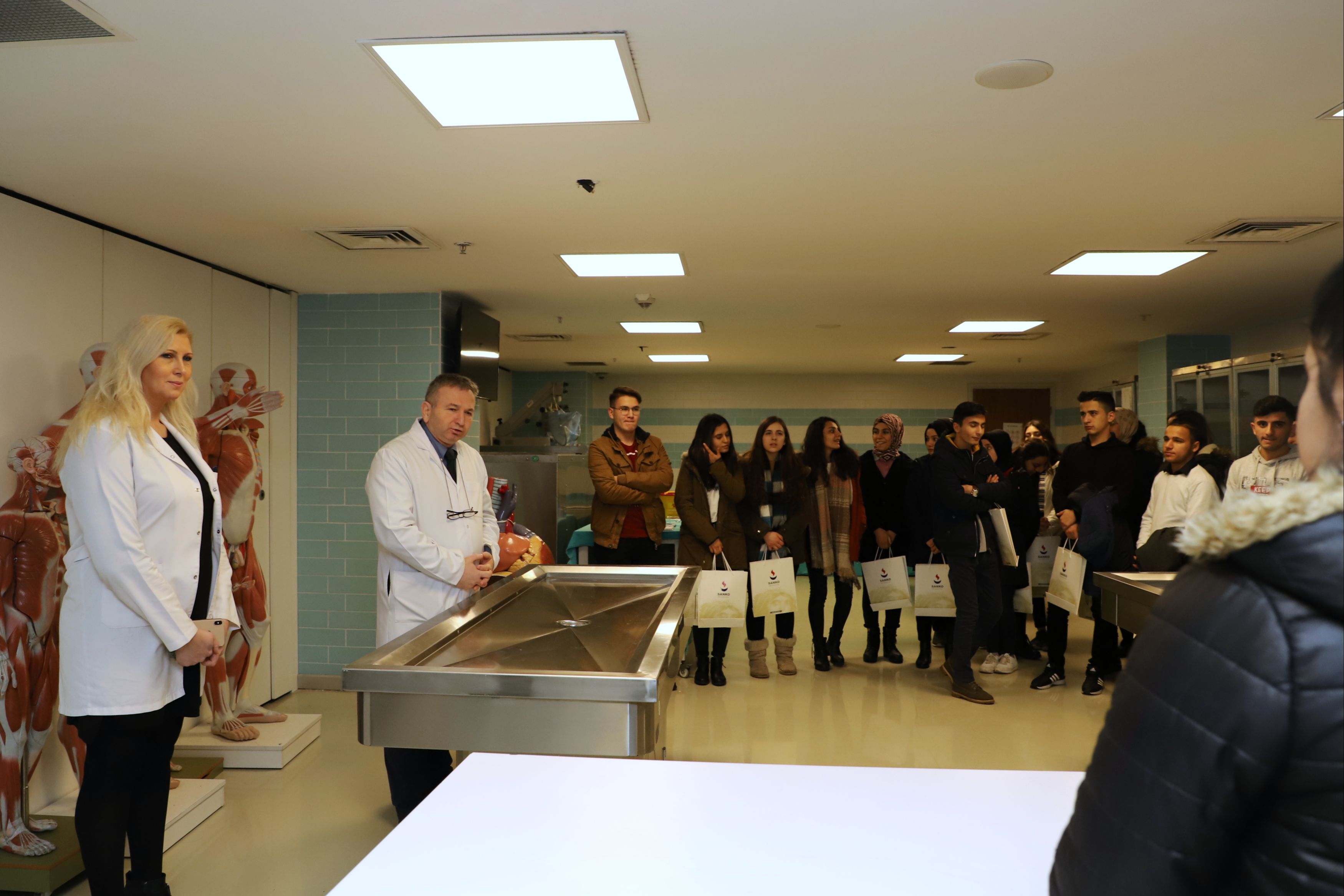 Rehber öğretmenleri ile birlikte laboratuvarları gezen öğrencilere, Tıp Fakültesi Anatomi Anabilim Dalı’ndan Prof. Dr. Özdemir Sevinç, anatomi laboratuvarı hakkında bilgi verirken, Laboratuvar Sorumlusu Nilay Uçar ise birbirinden farklı eğitimlerin ve araştırma projelerinin gerçekleştirildiği laboratuvarları tanıttı.