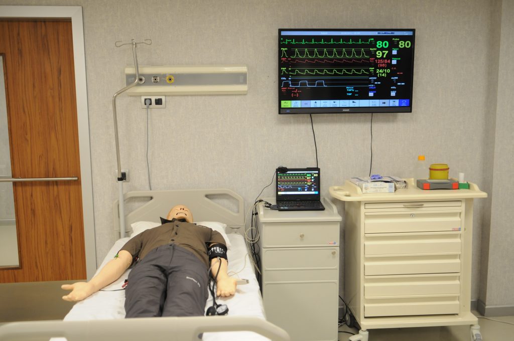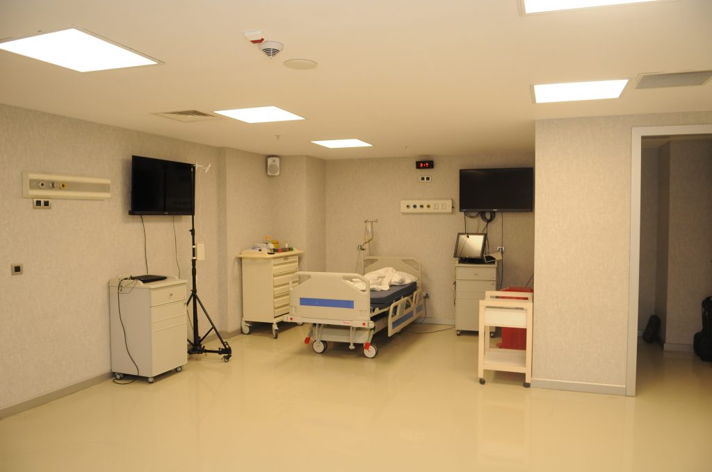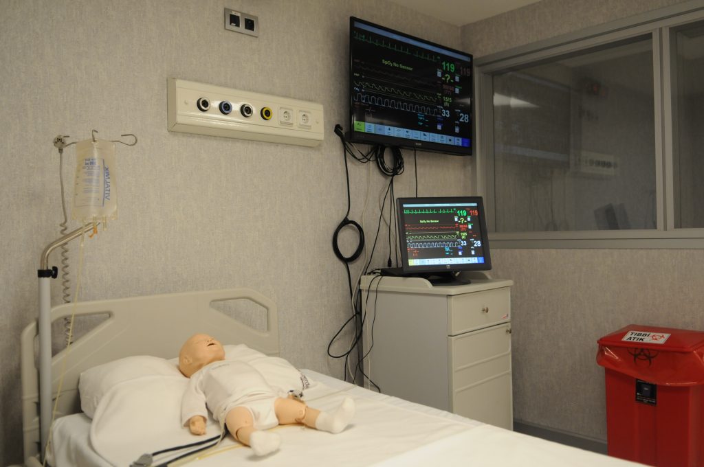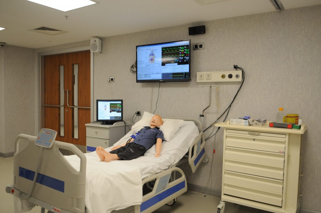Simülasyon gerçekte var olan hastalık, durum, olay ya da teknik becerilerin gerçeğe uygun olarak kurgulanması ve canlandırılmasıdır. Tıp Fakültesi ve Hemşirelik Bölümü öğrencilerimiz, klinik ve mesleki beceri uygulama derslerini Simülasyon Laboratuvarlarımızda yapmaktadır. Simülasyon Laboratuvarı üç bölümden oluşmaktadır; birinci ve ikinci bölümlerde gerçeğe uygun olarak tasarlanmış acil serviste ve tüm branşlarda karşılaşılabilecek birçok hasta profili simüle edilebilmektedir. Bu uygulamalar için, SimMan, SimJunıor ve SimBaby diye adlandırılan üç adet simülatör maketi mevcut olup, bunlar ilaç uygulaması yapılan, ateşi ölçülebilen, kan alınan, nabızları alınan, tansiyonları ölçülen, gözyaşı olan, konuşabilen, normal ve patolojik solunum/kalp seslerinin simüle edilebildiği maketlerdir. Öğrencilerimiz, klinikte karşılaşabilecekleri basitten karmaşığa her türlü hastalık ya da durumu (kalp krizi, kalp durması, solunum yetmezliği, travma vb.) bu simülatörler üzerinde bireysel olarak ya da takım halinde uygulama yaparak öğrenmektedir. Laboratuvarlarımızda yapılan tüm bu uygulamalar sesli ve görüntülü olarak kayıt altına alınmakta ve uygulama sonrasında öğrencilerimize kayıtlar üzerinden geribildirimler yapılarak, nerede hata yaptıkları tartışılmaktadır. Üçüncü bölümde ise, simüle hasta (bir hastalık konusunda eğitilmiş hasta rolü oynayan kişi) odası bulunmakta olup, burada anamnez alma ve hasta ile iletişim kurma çalışmaları yapılmaktadır.