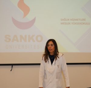Sağlık Bilimleri Fakültesi Hemşirelik Bölümü Öğr. Gör. Mustafa Kavak da öğrencilere bölümün özellikleri, temel beceri laboratuvarı ile SANKO Üniversitesi Hastanesi’nin olanaklarını anlattı.