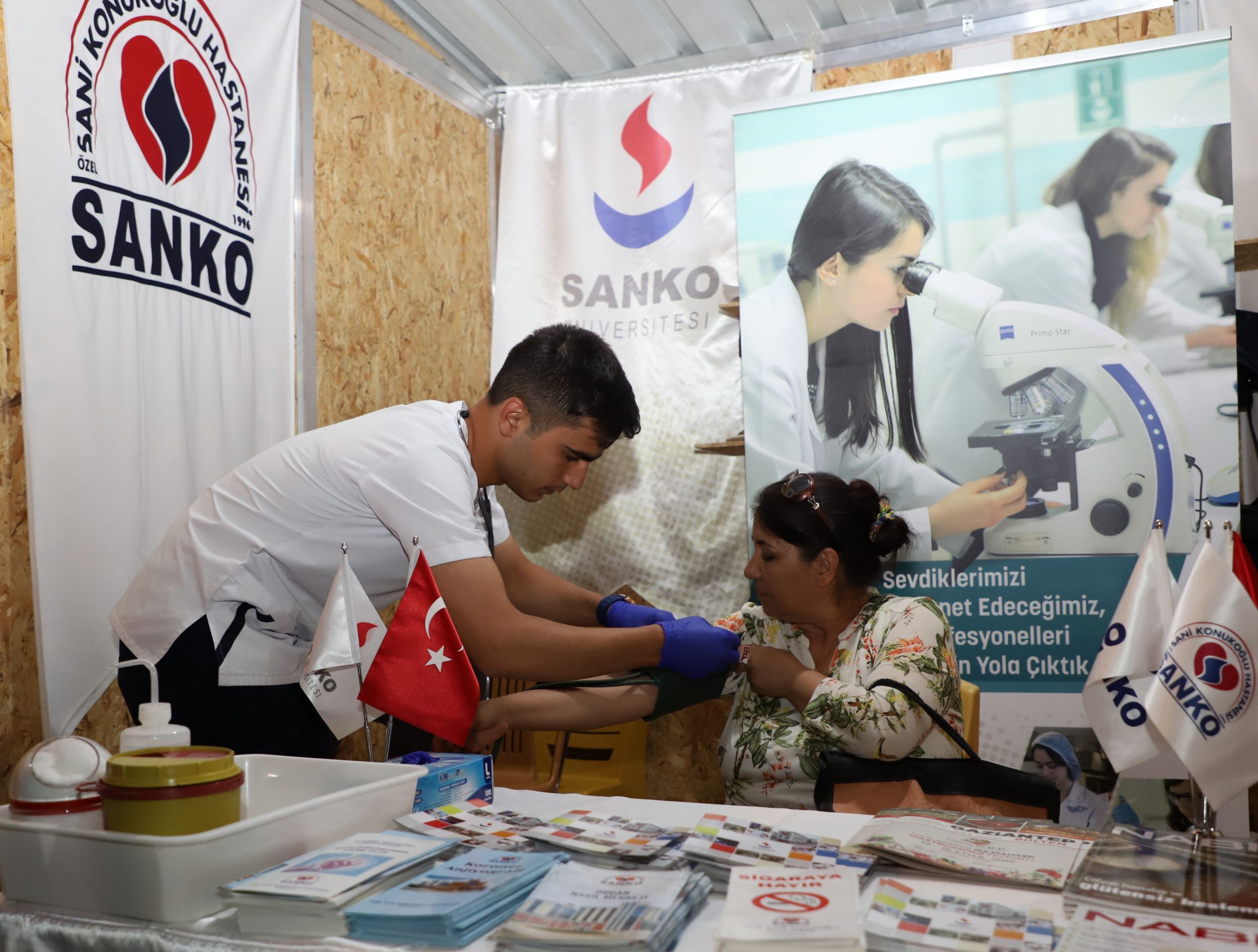 Gaziantep Valiliği koordinasyonunda Büyükşehir Belediyesi ve Gaziantep’i Geliştirme Vakfı (GAGEV) iş birliği ile 12 – 15 Eylül 2019 tarihleri arasında Festival Park’ta düzenlenen GASTROANTEP’te yerel ve ulusal pek çok firmanın yanında SANKO Üniversitesi akademik ve idari kadrosuyla bilgilendirme yaparken, Sani Konukoğlu Uygulama ve Araştırma Hastanesi tarafından dileyen ziyaretçi ve katılımcılara ücretsiz kan şekeri ve tansiyon ölçümü yapılıyor.