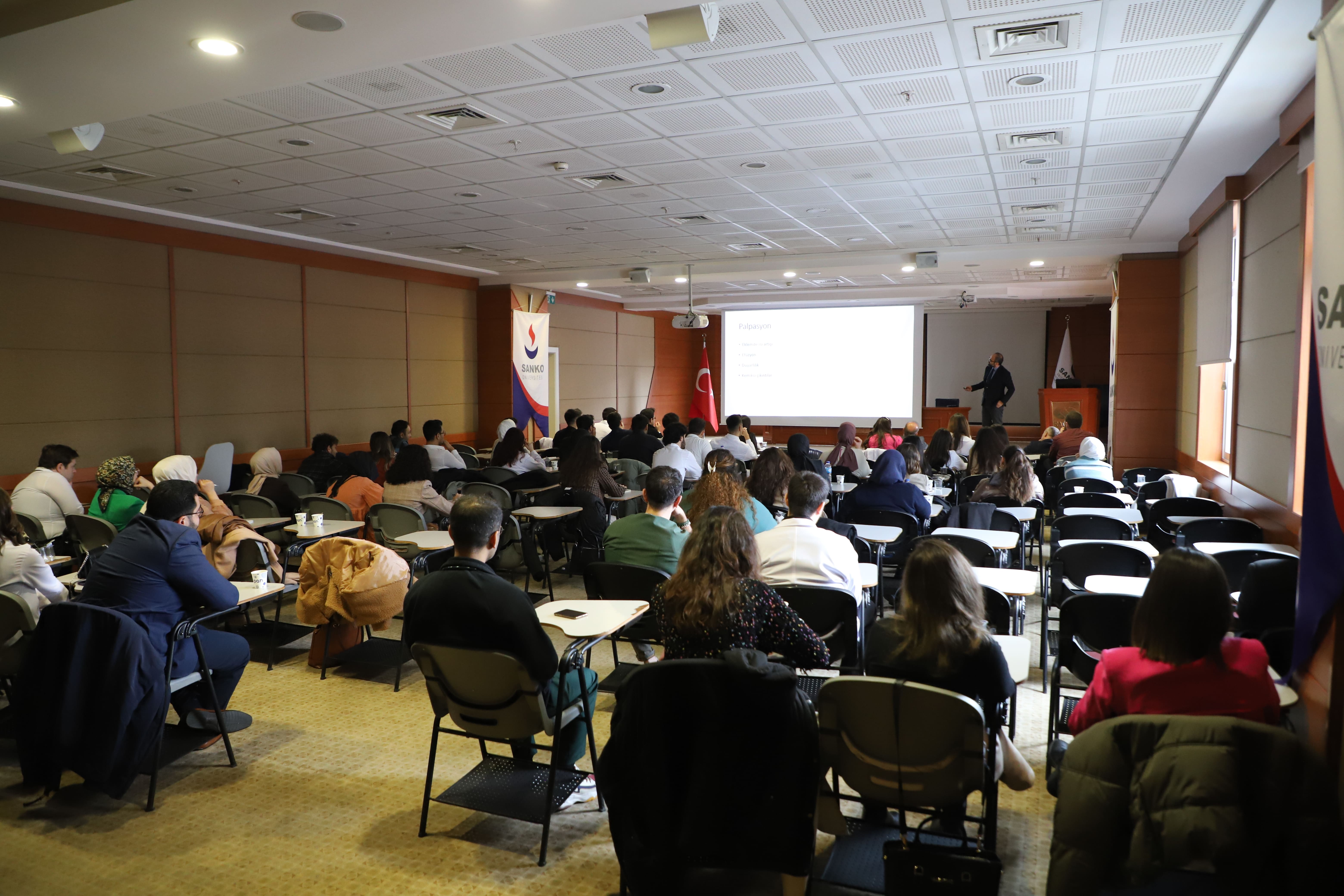 Prof. Dr. Bünyamin Kısacık öncülüğünde SANKO Üniversitesi Hastanesi Anadolu Toplantı Salonunda düzenlenen sempozyuma, iç hastalıkları uzmanları ve asistanları ile tıp fakültesi öğrencileri yoğun ilgi gösterdi.