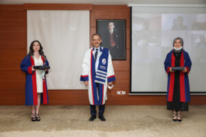 Mezuniyet yemin töreni, tüm dünyayı olumsuz etkileyen koronavirüs salgını nedeniyle, sosyal mesafe dikkate alınarak SANKO Üniversitesi Tıp Fakültesi Fizyoloji Anabilim Dalı Öğr. Görevlisi Zeynep Rumeysa Yoldaş’ın sunuculuğunda SANKO Üniversitesi Hastanesi toplantı salonunda gerçekleştirildi.