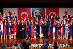 Tıp Fakültesi’nin birincilikle bitiren Dr. Esra Genç, mezuniyet kütüğüne ismini çaktıktan sonra yaptığı konuşmada, “Heyecanlıyım çünkü bugün bizzat Mustafa Kemal Atatürk tarafına üzerimize yüklenen büyük bir sorumluluğun altına giriyoruz. Büyük Atatürk, ‘Beni Türk hekimlerine emanet ediniz!’ derken kastedilen hekimlerin bir parçasıyız artık” diyerek mutluluğunu paylaştı.
