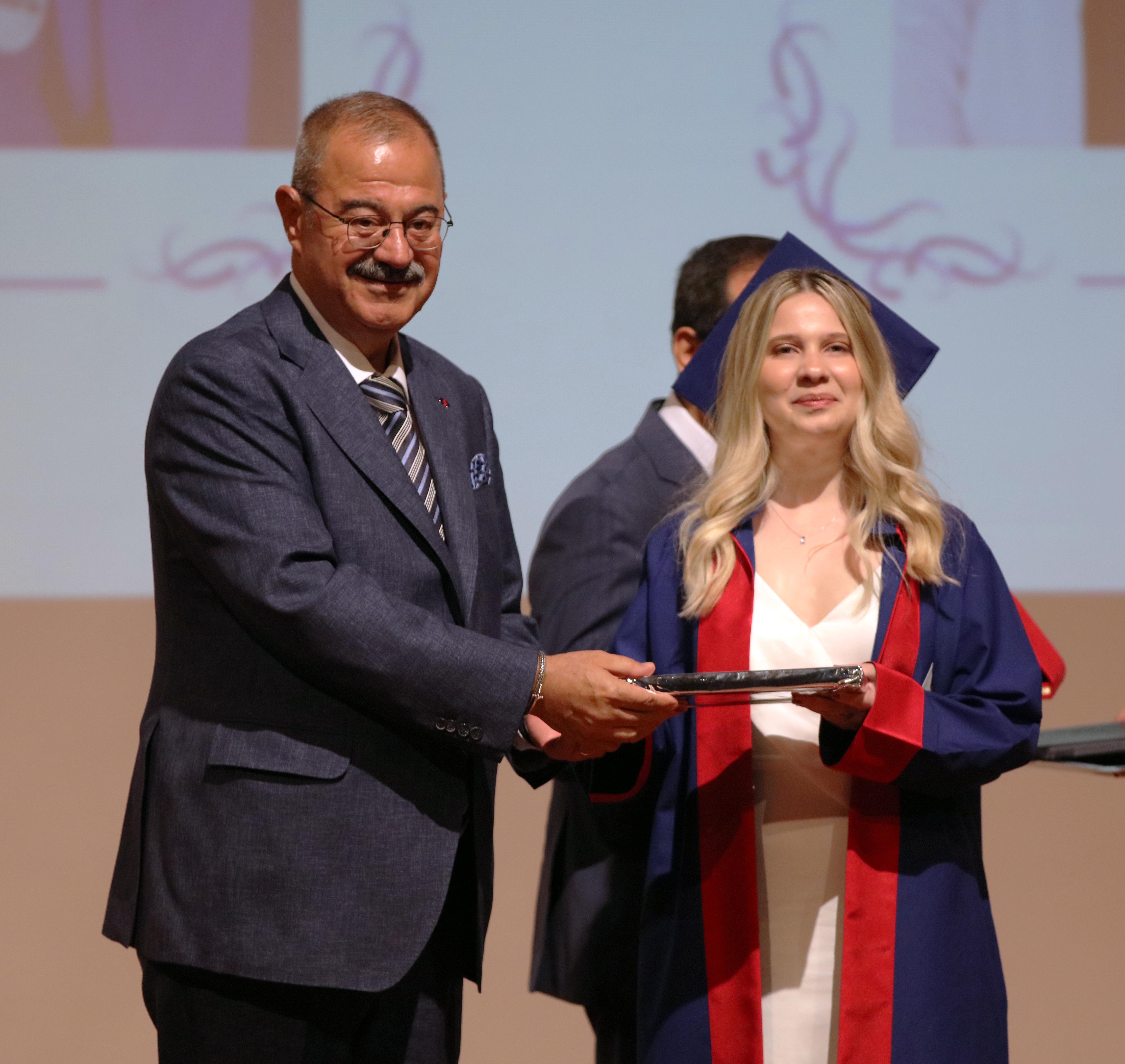 Konuşmaların ardından dereceye giren fakülte birincisi Dr. Dilanur Özveri, fakülte ikincisi Dr. Saadet Simay Şener ve fakülte üçüncüsü Dr. Sena Sevengül’e hediye, plaket ve diplomaları takdim edildi.
