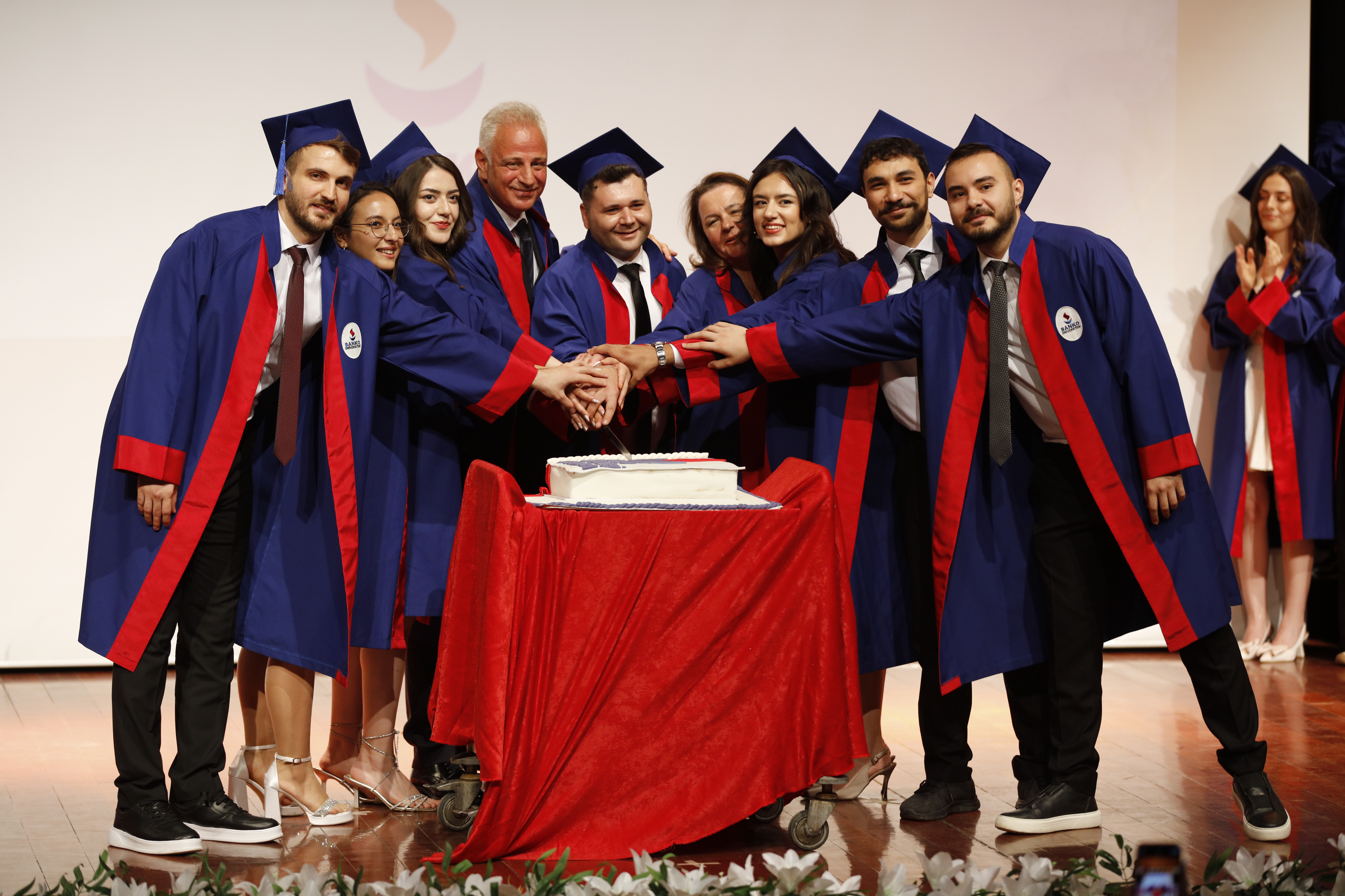 Abdulkadir Konukoğlu Kültür ve Spor Merkezi’nde düzenlenen törene; SANKO Üniversitesi Mütevelli Heyeti Onursal Başkanı Abdulkadir Konukoğlu, Gaziantep Büyükşehir Belediyesi Başkan Vekili Hakan Aslansoy, Gaziantep İl Sağlık Müdürü Dr. Beytullah Şahin, SANKO Üniversitesi Mütevelli Heyet Üyeleri Dr. İbrahim Konukoğlu, İhsan Akyol, Rektör Yardımcısı Prof. Dr. M. Metin Bayram, Genel Sekreter Dr. Yusuf Ziya Yıldırım, Kent Konseyi Onursal Başkanı Dr. Samet Bayrak, İl Emniyet Müdür Yardımcısı Ali Erkan Aktaşgül, Gaziantep-Kilis Tabip Odası Yönetim Kurulu Üyesi Prof. Dr. Ahmet Ferudun Işık, Cengiz Gökçek Kadın, Doğum ve Çocuk Hastalıkları Hastanesi Başhekimi Uzm. Dr. Fatma Coşkun, Dr. Ersin Arslan Eğitim ve Araştırma Hastanesi Başhekimi Prof. Dr. Serdar Türkmen, SANKO Üniversitesi Sağlık Bilimleri Fakültesi Dekanı Prof. Dr. Türkan Pasinlioğlu, Tıp Fakültesi Dekan Yardımcısı ve Lisansüstü Eğitim Enstitü Müdürü Prof. Dr. Ayşen Bayram, Gaziantep İslam Bilim ve Teknoloji Üniversitesi Rektör Yardımcısı ve Tıp Fakültesi Dekan Vekili Prof. Dr. Mehmet Tarakçıoğlu, SANKO Üniversitesi Hastanesi Genel Müdürü Dr. Sermet Kileci, SANKO Üniversitesi Hastanesi Mesul Müdürü Dr. Mehmet Subaşı, SANKO Holding şirket yöneticileri, öğretim üyeleri, öğrenciler ve aileleri katıldı.