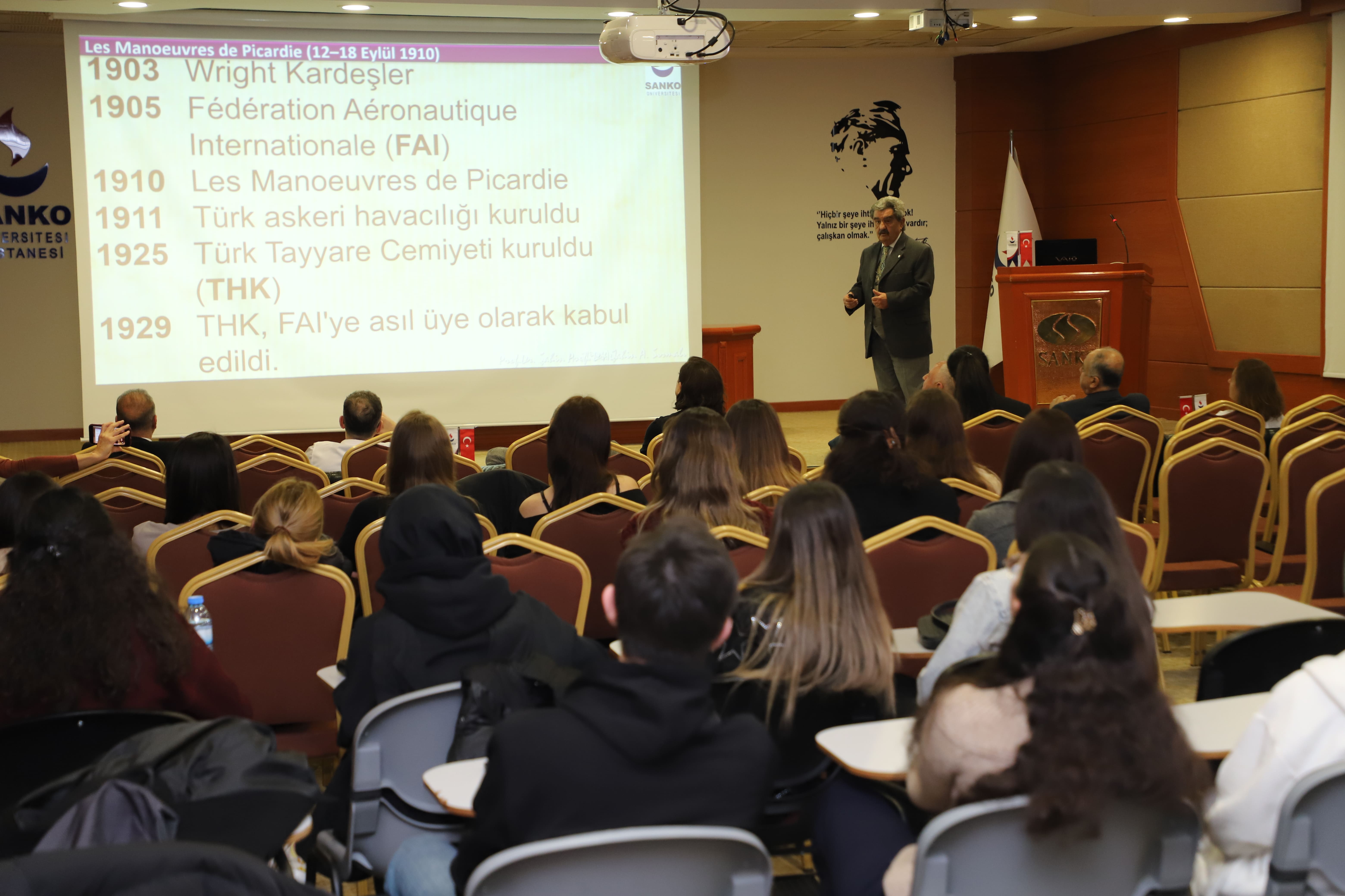 SANKO Üniversitesi Ortak Dersler Bölümü Başkanı Prof. Dr. Şahin A. Sırmalı “Çanakkale Hava Savaşları” konulu yaptığı sunumda havacılık tarihine değinerek, savaş dönemlerinde kullanılan uçakların önemine dikkat çekti.