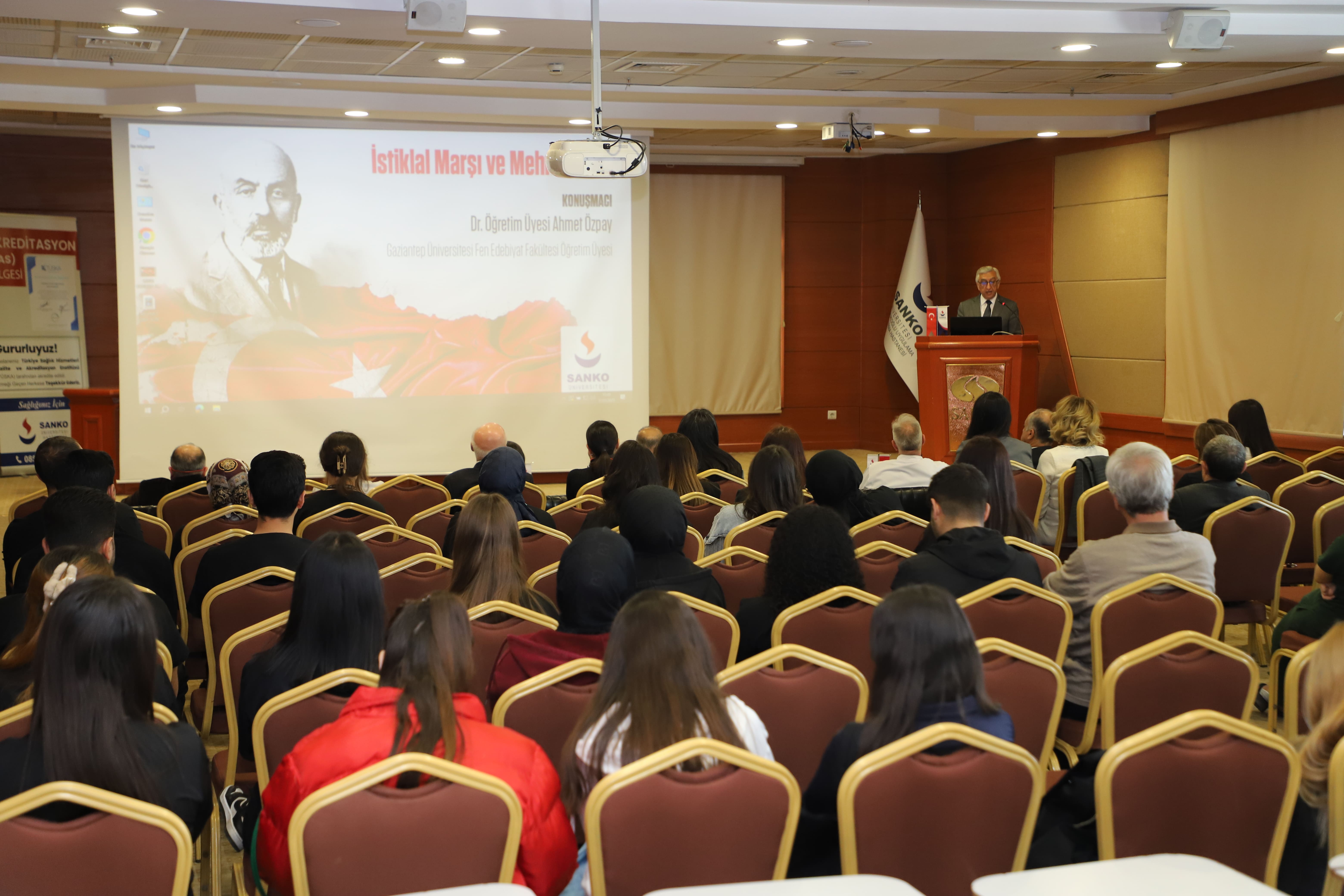 SANKO Üniversitesi Edebiyat Kulübü tarafından İstiklal Marşı’nın Kabulünün 104’üncü yıl dönümü nedeniyle “İstiklal Marşı ve Mehmet Akif” konulu konferans düzenlendi.
