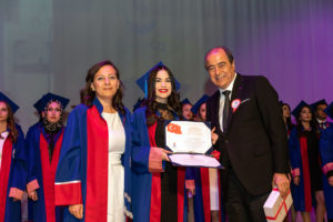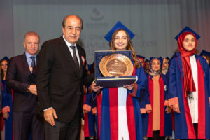 “Eğitiminizi başarıyla tamamladığınız için sizleri tebrik ediyorum. Artık eğitim yuvanızda öğrendiğiniz bilimi ve sahip olduğunuz vizyonu önce vatanınız ve milletiniz, sonra da tüm dünya ile paylaşacağınız zaman geldi. Eğitiminiz süresince sizlere öğretilen insanlığa hizmet felsefesini, aklınızdan çıkarmayacağınıza eminim. Bugünün kahramanları ve yarının öncü liderleri, Atatürk’ümüzün tanımıyla ‘geleceğin ümidi, ışıklı çiçekleri’, bugün hem başlangıç hem de bitiş yaşıyorsunuz. Bir yanda güzel anılar ve çok kıymetli tecrübelerle sonlanan üniversite hayatınız, bir yanda kazandığınız bilgi ve görgüyle emin adımlarla başlayacağınız geleceğiniz. Sizden dileğim birlikte büyüttüğümüz bu ağacı her hatırladığınızda göğsünüz kabarsın. Çünkü gölgemiz de heybetimiz de sizlerle büyüyecek ve gelişecektir.