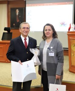 Sunumun ardından katılımcıların sorularını yanıtlayan Prof. Dr. Derya Erçal’a, teşekkür eden SANKO Üniversitesi Lisansüstü Eğitim Enstitüsü Müdürü ve Tıp Fakültesi Dekan Yardımcısı Prof. Dr. Ayşen Bayram, SANKO Üniversitesi adına armağan takdiminde bulundu.