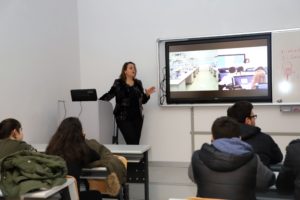 Üniversiteyi gezen öğrenciler, Laboratuvar Sorumlusu Nilay Uçar’dan laboratuvarlarla ilgili bilgi aldı.
