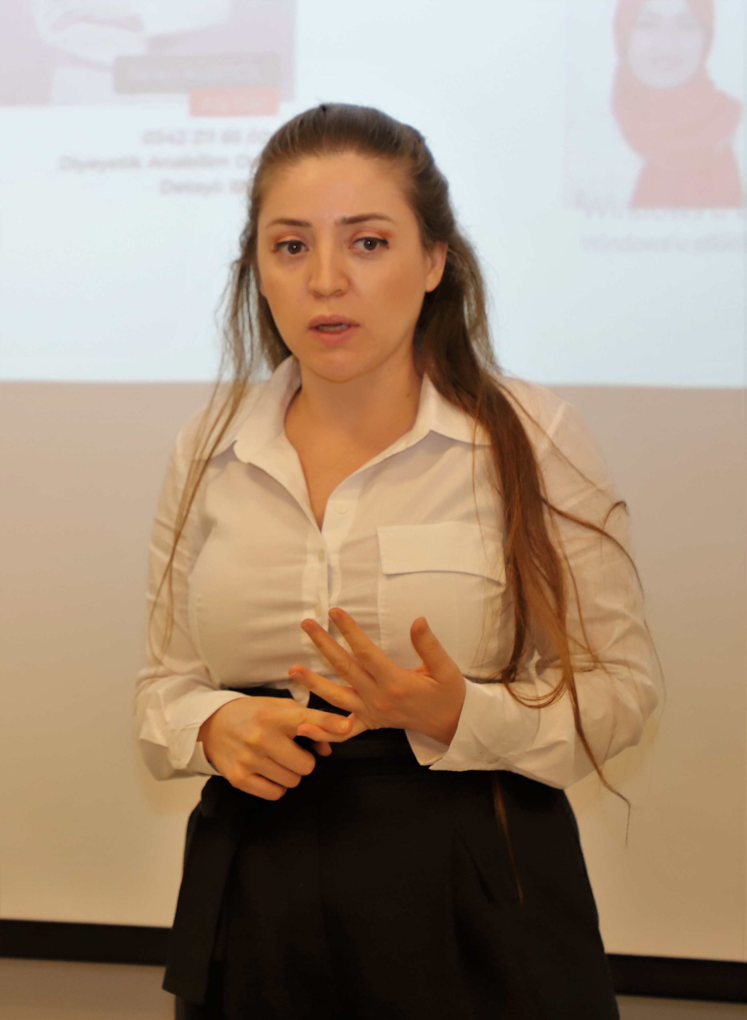 Sağlık Bilimleri Fakültesi Beslenme ve Diyetetik Bölümü’nden Dr. Öğr. Üyesi Funda Esin Fakılı da beslenmenin önemini anlatarak beslenme ve diyetetik uzmanlarının bu konudaki sorumluluklarına vurgu yaptı.