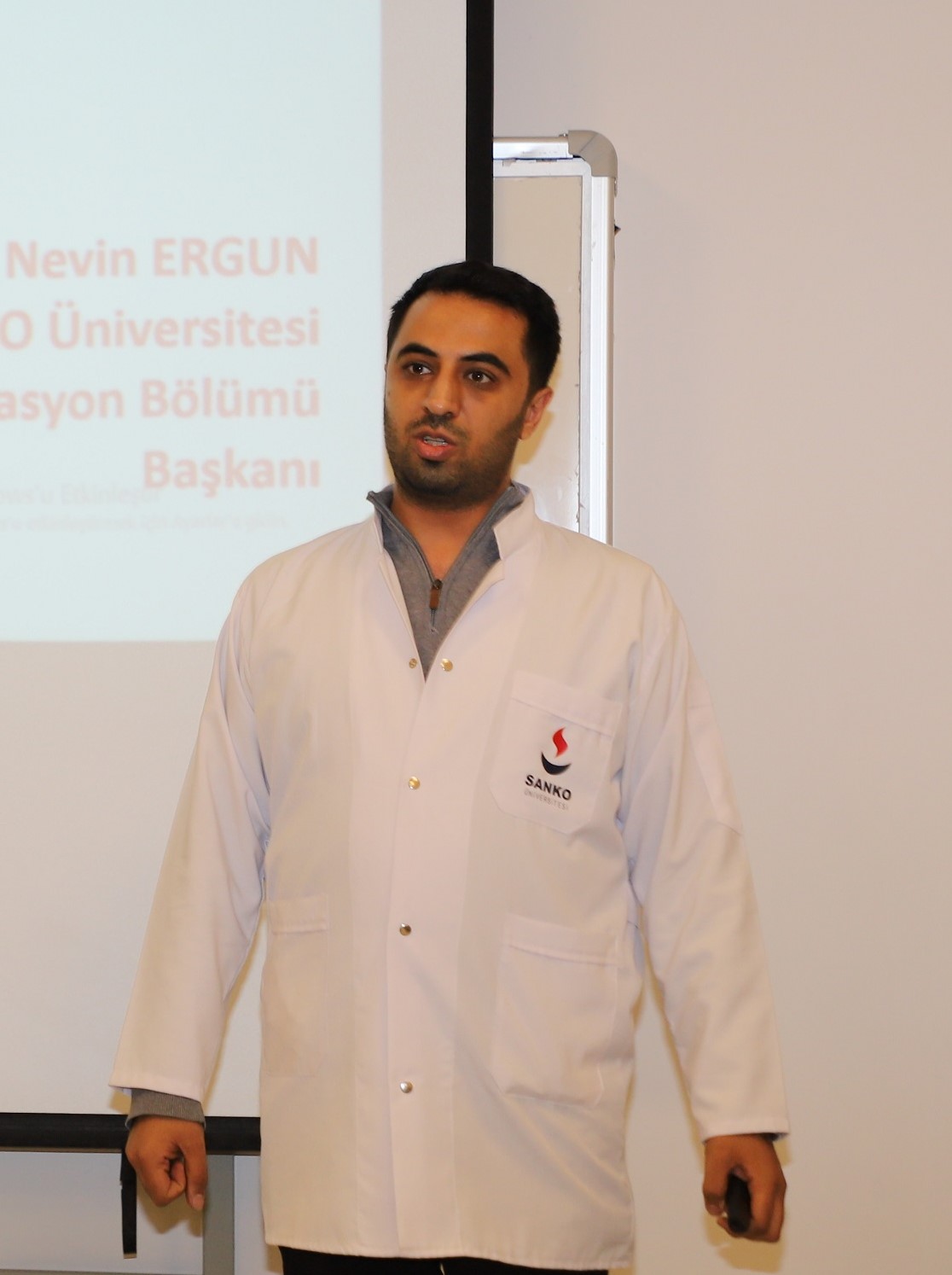 Sağlık Bilimleri Fakültesi Hemşirelik Bölümü Öğr. Gör. Mustafa Kavak da öğrencilere bölümün özellikleri, temel beceri laboratuvarı ile SANKO Üniversitesi Hastanesi’nin olanaklarını anlattı.Öğr. Gör. Kavak, ayrıca hemşirelerin çalışma alanlarından ve üniversitenin yurtdışı iş olanaklarına değindi.