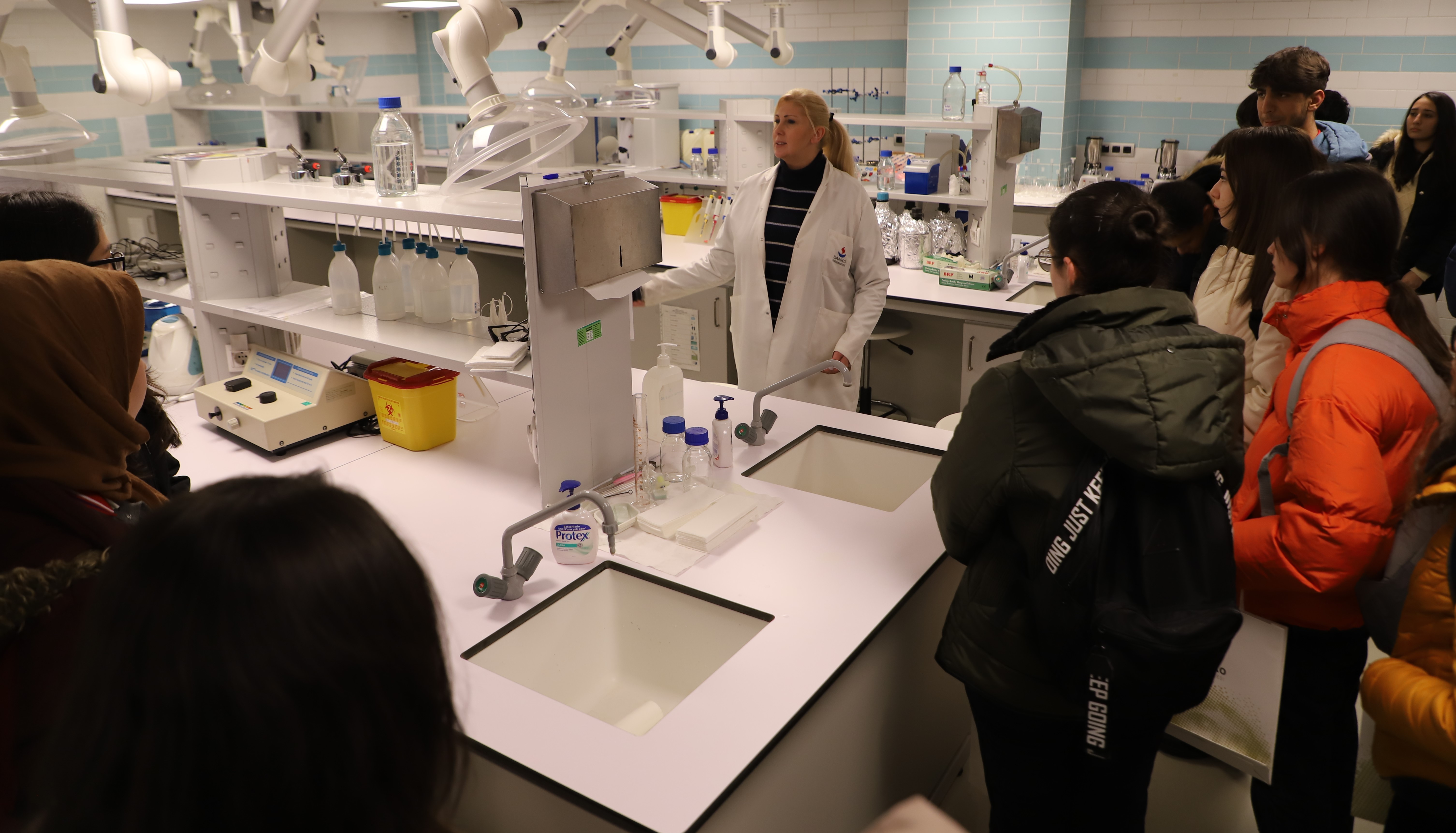Sağlık alanında kariyer hedefi olan öğrenciler, Rehber Öğretmenleri Kader Karageyik ve Tarih Öğretmeni Ömer Karayağız eşliğinde üniversiteyi gezerek, birimleri yerinde görme fırsatı buldu.