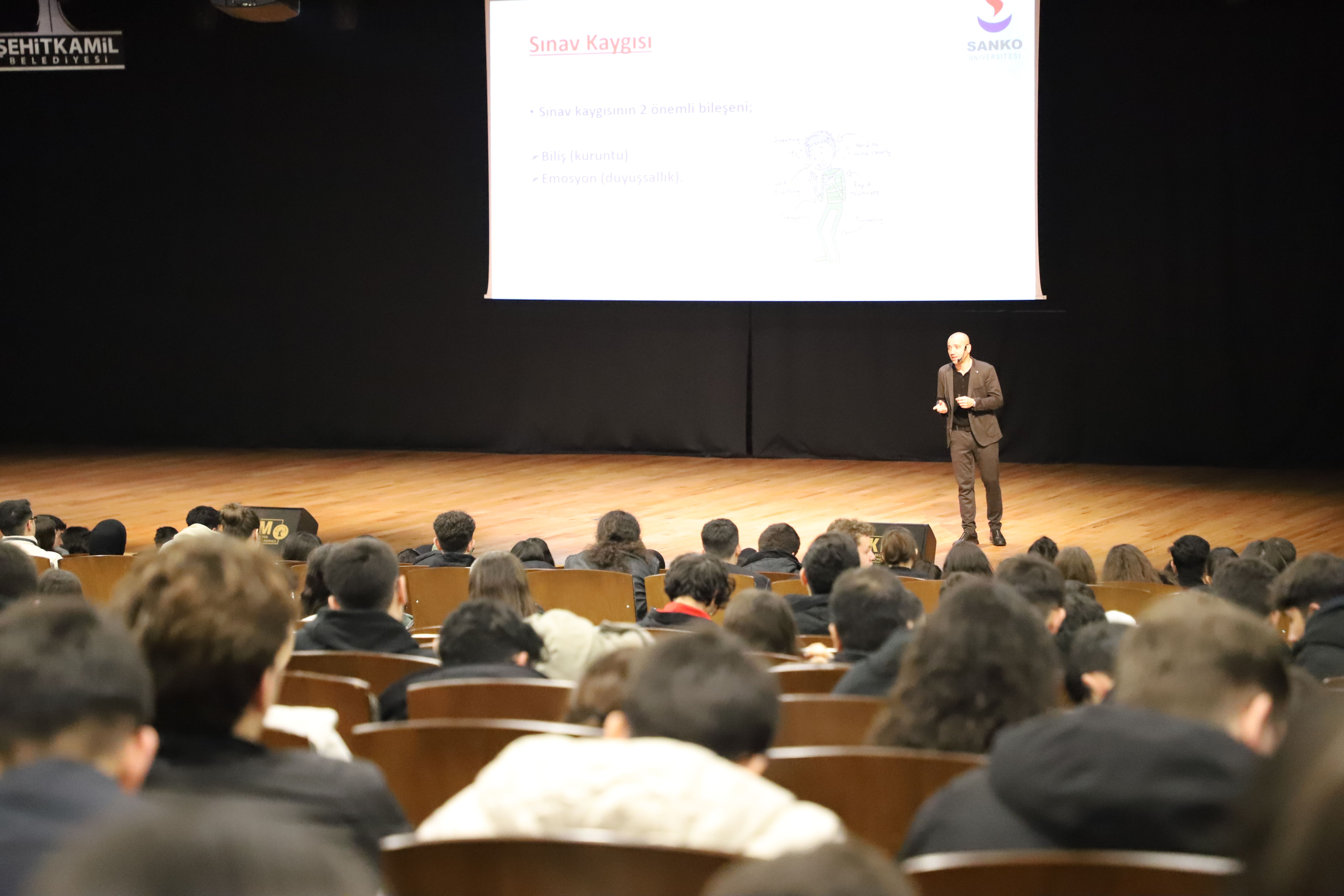 Yükseköğretim Kurumları Sınavı’na hazırlanan öğrencilerin, sınav sürecini daha sağlıklı, planlı ve verimli bir şekilde sürdürmesi amacıyla SANKO Üniversitesi ile Gaziantep Milli Eğitim Müdürlüğü iş birliğiyle düzenlenen “Üniversite Yolunda Sınav Stratejileri” etkinliğinin dördüncüsü Şehitkamil Kültür ve Kongre Merkezi’nde gerçekleştirildi.